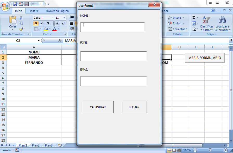 Habilitado para macros do Excel Nome: cadastro Tipo de arquivo: xlsm Tamanho: 17,9 KB